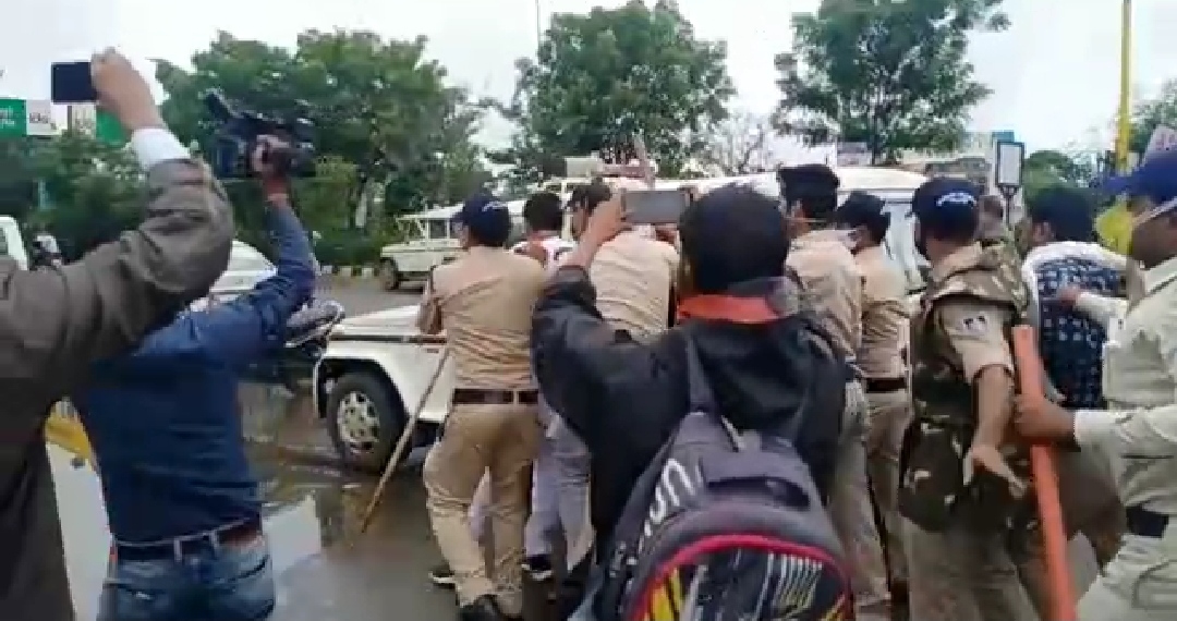इंदौर। भाजपा में जाने के बाद पहली बार इंदौर आए ज्योतिरादित्य सिंधिया का सोमवार को विरोध कर रहे कांग्रेसियो को पुलिस ने गिरफ्तार कर लिया। कुछ कांग्रेसियो द्वारा गिरफ्तारी का विरोध करने पर उनकी पिटाई भी की गई।