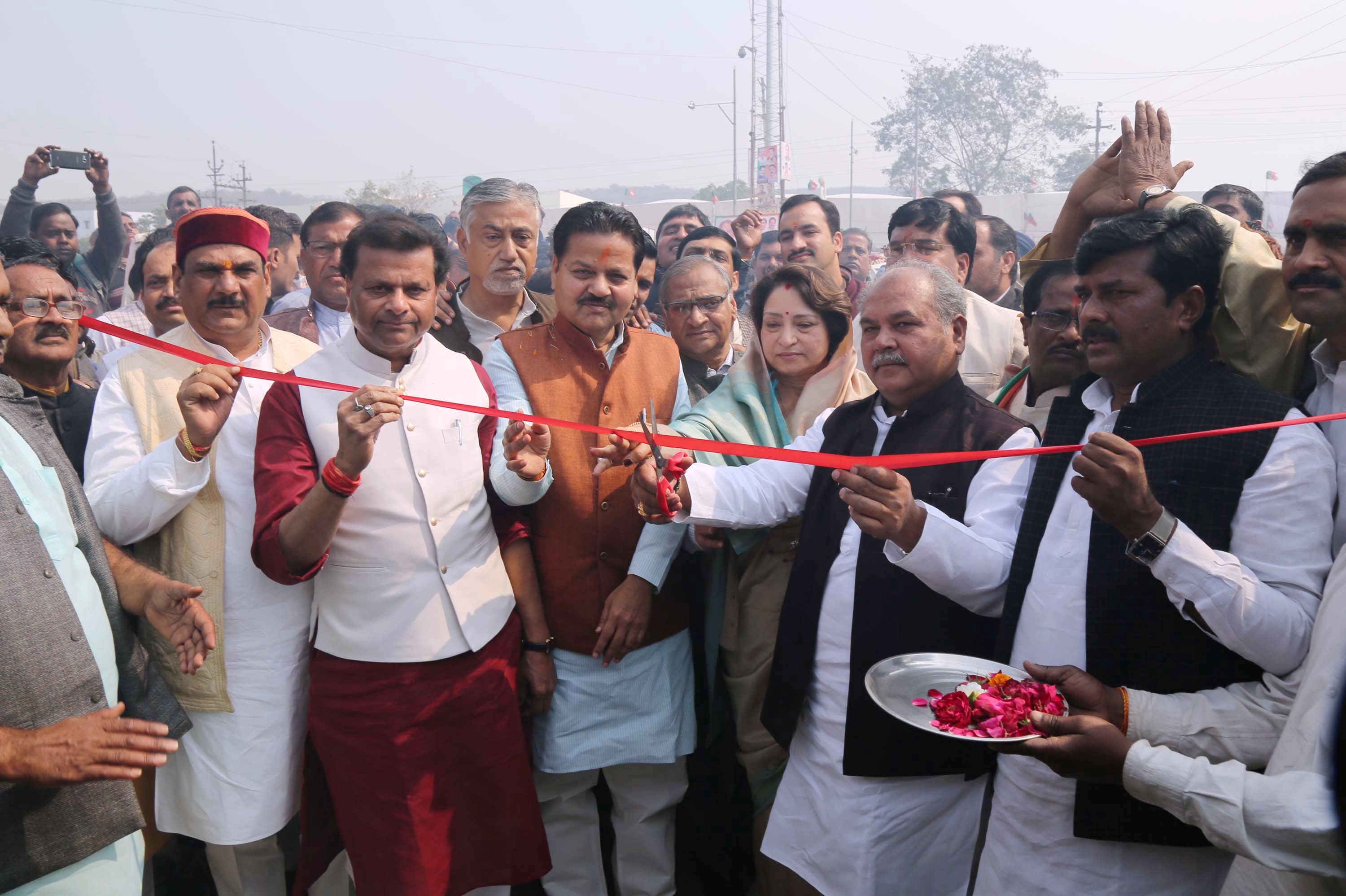 ग्वालियर। केन्द्रीय पंचायती राज, पेयजल, स्वच्छता एवं ग्रामीण विकास मंत्री नरेन्द्र सिंह तोमर ने कहा कि गत कुछ वर्षों में ग्वालियर जिले का नक्शा बदला है। उनके संसदीय क्षेत्र में एक हजार करोड़ के निर्माण कार्य प्रगति पर हैं और आने वाले कुछ ही दिनों में लगभग 250 करोड़ रूपए की लागत के दो प्रमुख मार्गों का निर्माण कार्य शीघ्र प्रारंभ होगा। उन्होंने यह बात आज विक्की फैक्ट्री तिराहे पर 122 करोड़ रूपए से बनाई गई तीन सीमेंट कंक्रीट रोड़ों के लोकार्पण अवसर पर मुख्य अतिथि के रूप में कही। कार्यक्रम की अध्यक्षता प्रदेश के लोक निर्माण मंत्री रामपाल सिंह ने की। कार्यक्रम में नगरीय विकास एवं आवास मंत्री माया सिंह, उच्च शिक्षा मंत्री जयभान सिंह पवैया सहित विधायक द्वय नारायण सिंह कुशवाह, भारत सिंह कुशवाह विशिष्ट अतिथि के रूप में उपस्थित थे।