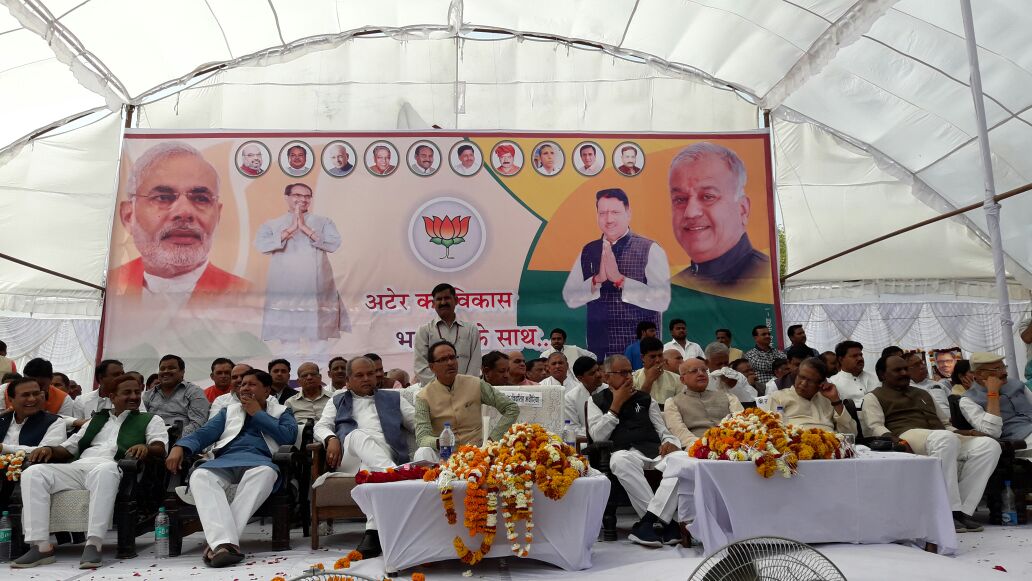 उन्होंने कहा कि चंबल अंचल में चंबल एक्सप्रेस वे के निर्माण के संबंध में केन्द्रीय परिवहन मंत्री ने सहमति दे दी है। इससे तीन जिलों में से हाइवे गुजरेगा और प्रगति का मार्ग उन्मुक्त होगा। उन्होंने कहा कि उत्तर प्रदेश में कांग्रेस की गति आप देख चुके हैं। इतना निकम्मापन पहली बार देखने में आया जब कांग्रेस गोवा में सरकार के गठन को लेकर सुप्रीम कोर्ट पहंुच गयी और अदालत ने उसे फटकार लगायी। कांग्रेस का काम सिर्फ बहाने बनाना और मिथ्या दोषारोपण करना रह गया है। उन्होंने कहा कि चंबल अंचल से दस्यु समस्या समाप्त कर दी गयी है। अब हमें चंबल के बीहडों को प्रगति की आधार भूमि बनाने के कार्य में जुटना है जिससे इस अंचल में खुशहाली का नया युग आयेगा। उन्होंने कहा कि प्रदेश में कोई भी प्रतिभावान गरीब सामान्य अथवा किसी भी वर्ग का छात्र धन के अभाव में उच्च शिक्षा से वंचित नहीं रहेगा। उसकी फीस का बंदोबस्त सरकार करेगी। इसके लिए बजट की कमी नहीं आने दी जायेगी। 1 हजार करोड़ रूपए मंजूर कर दिए गए है। उन्होंने कहा कि प्रदेश में महिला सशक्तिकरण के लिए सरकारी नौकरियों में आरक्षण दिया गया है। पुलिस में भर्ती की जायेगी। स्थानीय निकायों में पहले ही 50 प्रतिशत आरक्षण मिलने के बाद महिलाओं की भागीदारी 54 प्रतिशत हो चुकी है। उन्होंने कहा कि साढ़े सात करोड़ जनता हमारा परिवार है। सबके चेहरे पर मुस्कान और जीवन में खुशहाली लाना भारतीय जनता पार्टी की सरकार की प्रतिबद्धता है। उन्होंने कहा कि पं. दीनदयाल उपाध्याय जन्मशताब्दी वर्ष को गरीब कल्याण वर्ष के रूप में मनाने और रोटी कपड़ा मकान, दवा दिए जाने का भरोसा दिलाया और कहा कि अटेर के उपचुनाव में 9 अप्रैल को मतदान होगा। अंचल की जनता अपने को प्रत्याशी समझकर प्रचार कार्य में जुटेंगी और अधिकतम मतदान कर भारतीय जनता पार्टी को विजयी बनायेगी। उन्होंने भरोसा दिलाया कि भाजपा प्रत्याशी डॉ. अरविन्द भदौरिया मध्यप्रदेश सरकार और दिल्ली में नरेन्द्र सिंह तोमर मोदी सरकार तथा अटेर के मतदाताओं के बीच सेतु का कार्य करेंगे और विकास को गांव गांव, घर घर तक पहंुचाने में जुटेंगे। जनता को इस लक्ष्य को फलीभूत करने के लिए आगे आने का आव्हान किया।
