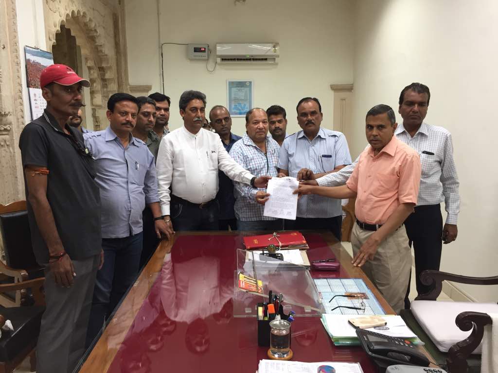 ग्वालियर। मध्यप्रदेश श्रमजीवी पत्रकार संघ ने श्योपुर में भास्कर के ब्यूरो प्रमुख दशरथ सिंह परिहर की ए.डी.एम., गनर एवं रीडऱ द्वारा की गई मारपीट के विरोध में संभागीय आयुक्त एस.एन.रूपला को मुख्यमंत्री शिवराज सिंह चौहान के नाम ज्ञापन सौंपा। ज्ञापन की प्रति प्रदेश के जनसंपर्क, जलसंसाधन एवं संसदीय कार्य मंत्री डॉ. नरोत्तम मिश्र को भेजी गई हैं। ज्ञापन संघ के प्रांतीय कार्यकारी अध्यक्ष सुरेश शर्मा के नेतृत्व में दिया गया। इस मौके पर संघ के प्रांतीय उपाध्यक्ष विनय अग्रवाल, वरिष्ठ पत्रकार डॉ. राकेश पाठक, संजय त्रिपाठी, प्रदीप तोमर, दिनेश गुप्ता, प्रवीण चतुर्वेदी, कौशल मुद्गल, प्रदीप बोहरे, बृजमोहन शर्मा, अपर्ण राउत, राकेश भारती समेत तमाम पत्रकार मौजूद रहे।