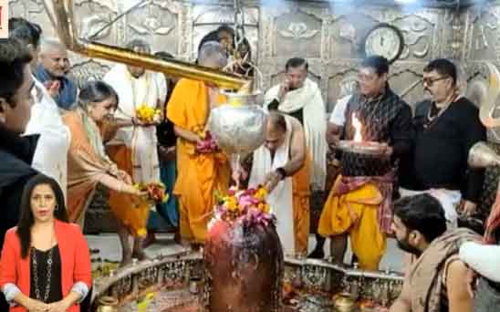 महाकाल प्रबंध समिति की ओर से एडीएम संतोष टैगोर ने अनिल अंबानी को बाबा महाकाल की तस्वीर और प्रसादी भेंट कर उनका सम्मान किया। दर्शन के दौरान उद्योगपति अनिल अंबानी ने मीडिया से दूरी बनाए रखी। जैसे ही उद्योगपति अनिल अंबानी महाकाल मंदिर दर्शन करने पहुंचे उसी दौरान पंडित आशीष पुजारी ने उनसे कहा कि आपका महाकाल दर्शन करने आना 8-9 वर्षों बाद हो रहा है, जिस पर उद्योगपति अनिल अंबानी ने कहा कि 8-9 वर्ष नहीं…. मैं पूरे 14 वर्ष बाद बाबा महाकाल की शरण में आया हूं मेरा वनवास पूरा हुआ।