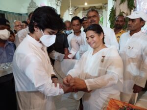 कार्यक्रम के अंत में बी.के.आदर्श दीदी जी ने युवराज महानआर्यमन सिंधिया जी को रक्षा सूत्र बांधा एवं संस्थान की ओर से सौगात भेंट की ।