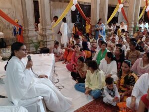 तत्पश्चात बी.के.आदर्श दीदीजी ने सभी को शुभकामनाएं देते हुए बताया कि जन्माष्टमी का दिन हम सभी को उस स्वर्णिम दुनिया की याद दिलाता है । ऐसा युग जहां कोई मत भेद, मन भेद नहीं था, वहां सभी लोग एक दूसरे की विशेषताएं देखते थे । ऐसी सुंदर दुनिया इस धरा पर फिर से आने वाली है । जहां सुख और चैन की वंशी बजेगी। श्रीकृष्ण जी की दुनिया मे चलने के लिए हमें अपने आप को दिव्य गुणों से भरना होगा एवं बुराइयों को छोड़ना होगा।