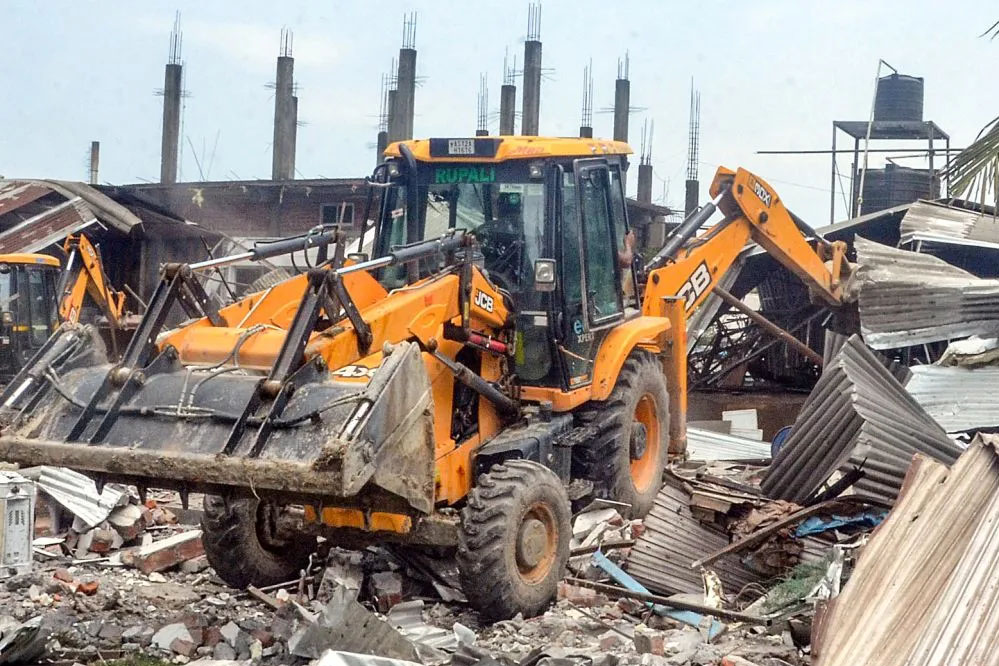 बुलडोजर ऐक्शन के दौरान जुड़ी भारी भीड़