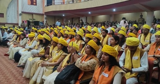 इंदौर। इंदौर के देवी अहिल्या विश्वविद्यालय के वार्षिक दीक्षांत समारोह में शनिवार को 71 विद्यार्थियों को गोल्ड,10 को सिल्वर मेडल दिए और 142 पीएचडी उपाधि दी गई। मालवीय पगड़ी, कुर्ता और जैकेट पहने विद्यार्थी मेडल लेने आए थे और उनके चेहरों पर सफलता की मीठी मुस्कान थी।