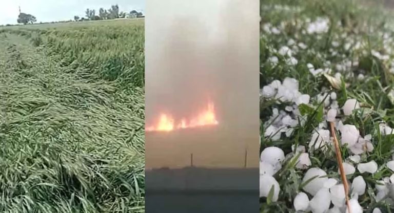 उज्जैन: मध्यप्रदेश के कई जिलों में सोमवार शाम 4 बजे के बाद मौसम ने करवट ले ली. भोपाल, इंदौर, उज्जैन समेत कई जिलों में अचानक तेज हवा आंधी तूफान के साथ कई क्षेत्रों में ओलावृष्टि देखी गई. बारिश व ओला वृष्टि की वजह से पकी पकाई किसानों की गेहूं की फसल तबाह हो गई. आंधी तूफान इतने तेज था कि जिले के ग्राम जगोटी में रोड बनाने वाले कांट्रेक्टर का कैम्प उड़ गया. वहीं फसलों की तबाही, बारिश और ओला वृष्टि के वीडियो सामने आए है.