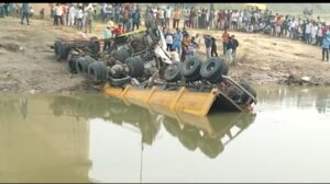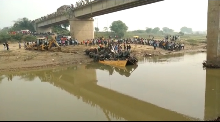 भिण्ड। मध्यप्रदेश के भिण्ड से उत्तरप्रदेश के इटावा जा रहा गिट्टी से भरा एक डंपर आज कुंवारी नदी के पुल से 50 फीट की ऊंचाई से नदी में जा गिरा। घटना के बाद फूप पुलिस मौके पर पहुंच गई। डंपर में चालक व क्लीनर दोनों की मौत हो गई।
