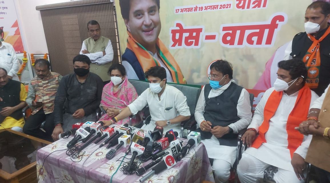 प्रेस वार्ता के दौरान केंद्रीय मंत्री ज्योतिरादित्य सिंधिया ने कहा कि, आज प्रधानमंत्री के नेतृत्व में जहां देश विकास की तरफ अग्रसर होकर तरक्की कर रहा है, तो वहीं मुख्यमंत्री शिवराज सिंह चौहान के नेतृत्व में प्रदेश को केंद्र से हर संभव मदद पहुंचाई जा रही है।