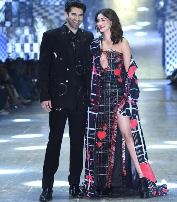 लैक्मे फैशन वीक 2023 के ग्रैंड फिनाले में बॉलीवुड के कई कलाकार शामिल हुए. इस ग्रैंड फिनाले में अनन्या पांडे और आदित्य रॉय कपूर भी नजर आए. दोनों मनीष मल्होत्रा के शो स्टॉपर थे. उन्होंने साथ में वॉक किया और पोज भी दिए. इन दोनों की कई तस्वीरें और वीडियो वायरल हो रहे हैं. आदित्य ब्लैक सूट में नजर आ रहे हैं. तो अनन्या ने हाई स्लिट ड्रेस पहनी थी.