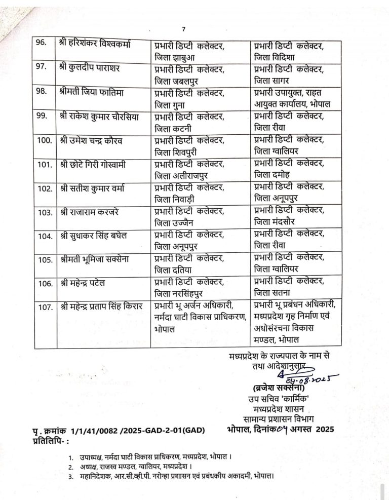 कुछ वरिष्ठ अधिकारियों को उनकी मौजूदा जिम्मेदारियों के साथ-साथ अतिरिक्त प्रभार भी दिए गए हैं, जिससे विभिन्न विभागों के बीच समन्वय और कार्यकुशलता में सुधार हो सके:
