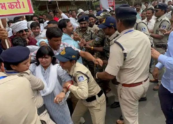 मुख्यमंत्री चौहान और राज्यपाल पटेल शुक्रवार को जिले के महेश्वर में आयोजित बाबा साहेब डॉ. भीमराव अंबेडकर जयंती समारोह एवं लाड़ली बहना सम्मेलन शामिल हुए। उनका काफिला वीआईपी रोड से गुजरना था। वहां पूर्व मंत्री और क्षेत्रीय विधायक साधौ अपने समर्थकों के साथ जुटी थी। उनके हाथों में मेडिकल कॉलेज की मांग और निमाड़ उत्साह के आयोजन की मांग वाली तख्तियां थी। पुलिस ने काफिले के आने से पहले ही विधायक को पकड़कर पुलिस वाहन में बैठाने की कोशिश की। साधौ वाहन में बैठने से इनकार कर रही थीं। मौके पर मौजूद पुलिसकर्मी उन्हें जबरन वहां से दूर ले जाना चाहते थे। इस दौरान महिला पुलिसकर्मियों ने उन्हें पकड़कर पीछे की ओर धक्का दे दिया। उन्होंने विधायक को जबरन वाहन में बैठाया और थाने ले गए। साथ की कांग्रेस कार्यकर्ताओं को भी गिरफ्तार कर लिया गया।