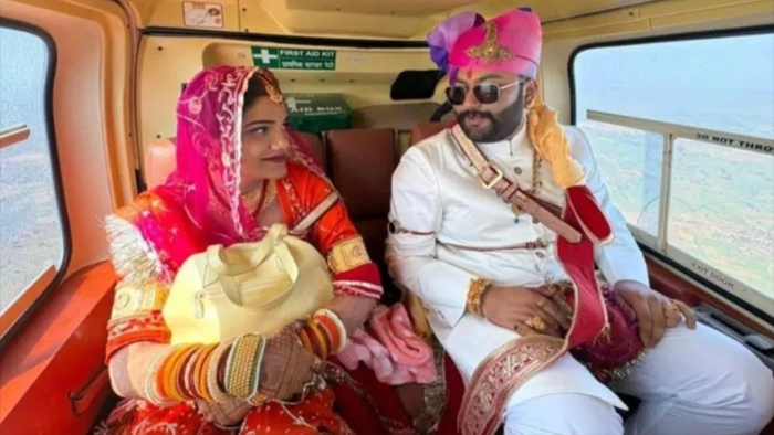 बुधवार सुबह विदाई के समय विवाह स्थल के पास अस्थायी हेलीपैड बनाया गया था। जैसे ही हेलीकॉप्टर पहुंचा, वहां मौजूद लोगों में उत्सुकता बढ़ गई। दुल्हन जब हेलीकॉप्टर में बैठकर विदा हुई तो यह पल सभी के लिए भावुक और यादगार बन गया। हेलीकॉप्टर उड़ते ही लोगों ने तालियां बजाकर नवविवाहित जोड़े को शुभकामनाएं दीं। कई लोगों ने इस अनोखी विदाई का वीडियो और फोटो अपने मोबाइल फोन में कैद किया।