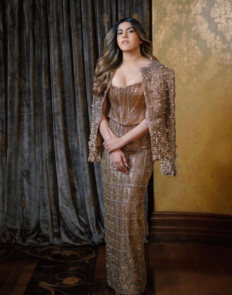 शादी या किसी फंक्शन के लिए अनन्या का यह ट्रेडिशनल आउटफिट बेहद खूबसूरत है। उन्होंने ब्राउन कलर का हैवी हैंड एम्ब्रॉयडरी वाला स्ट्रेट फिट लहंगा पहना है। इसके साथ क्रोसेट टॉप और मैचिंग जैकेट स्टाइल की है, जो उनके लुक को और भी खास बनाता है।