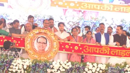 मुख्यमंत्री लाड़ली बहना योजना शुरू करने के लिये जिले की महिलायें मुख्यमंत्री शिवराज सिंह चौहान के प्रति नए अंदाज में आभार जताने पहुँचीं। उन्होंने मंच पर पहुँचकर मुख्यमंत्री सहित अन्य अतिथियों को बड़ी राखी सौंपी। इसी तरह बांस बोर्ड के अध्यक्ष घनश्याम पिरोनिया ने पारंपरिक धनुषबाण सौंपकर मुख्यमंत्री शिवराज सिंह चौहान का स्वागत किया। उत्कृष्ट कालीन निर्माण में महारत हासिल कर चुके ग्वालियर जिले के अनुसूचित जाति के बुनकरों ने मुख्यमंत्री शिवराज सिंह चौहान को एक कालीन भेंट किया। इनके कालीन को हाल ही में जीआई टैग मिला है।