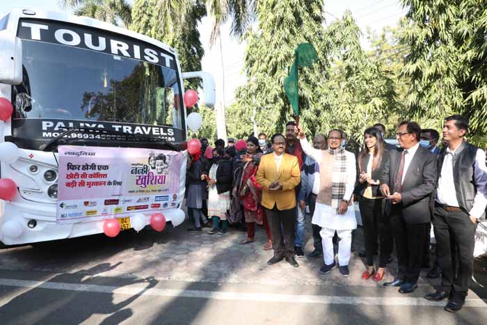 मुख्यमंत्री चौहान नन्हीं खुशियाँ कारवाँ कार्यक्रम में निवास परिसर आए बच्चों को संबोधित कर रहे थे। कार्यक्रम में आर्थिक रूप से कमजोर परिवारों के बच्चों को लग्जरी बस में भोपाल के पर्यटन स्थलों का भ्रमण कराया जाएगा। साथ ही बच्चों को प्रतिष्ठित होटल में भोजन भी कराया जाएगा। यह पहल नवदुनिया समाचार-पत्र समूह द्वारा की गई है। मुख्यमंत्री चौहान ने बच्चों की बस को हरी झंडी दिखाकर रवाना किया।