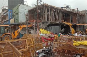उज्जैन। उज्जैन के विश्वप्रसिद्ध महाकालेश्वर मंदिर के सामने मंगलवार के दिन बुलडोजर कार्रवाई देखने को मिली। यह कार्रवाई निर्माणाधीन अवैध होटल पर की गई। आरोप है कि होटल संचालक बगैर अनुमति के होटल का निर्माण करवा रहा था। नगर निगम की तरफ से नोटिस भी दिया गया। नोटिस दिए जाने के बाद भी न तो कार्य रोका गया ना ही नोटिस का जवाब दिया। लिहाजा मंगलवार के दो बुलडोजर की मदद से होटल को जमीदोंज किया गया।