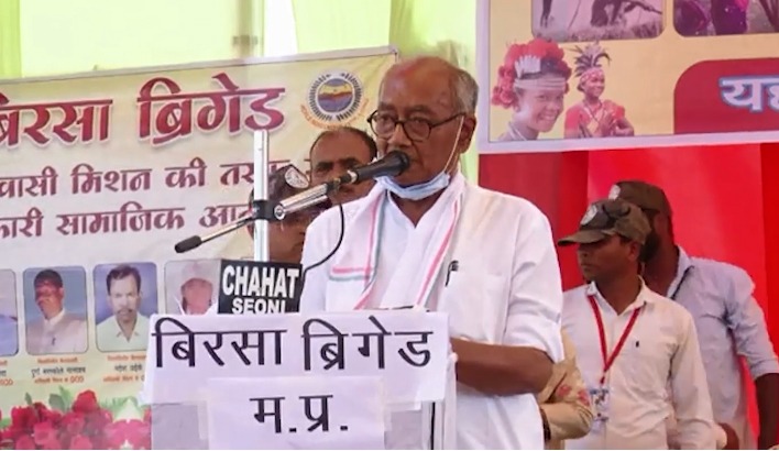 सभा को संबोधित करते हुए दिग्विजय सिंह ने कहा कि आदिवासियों के जल-जंगल-जमीन के साथ हमें ईवीएम मशीनों में हो रही चोरी व लोकतंत्र को बचाने हमें सबके साथ मिलकर लड़ाई लडऩी पड़ेगी। हम लोग ना केवल आदिवासियों की लड़ाई लड़ेंगे, बल्कि देश में जो ईवीएम मशीन में चोरी हो रही है, उसकी लड़ाई भी हम शरद पवार के नेतृत्व में लड़ेंगे। पूर्व मुख्यमंत्री ने कहा कि हम बटन दबाते हैं पता नहीं पड़ता वोट कहां गया। उन्होंने कहा कि वनवासी यदि शहर चला गया तो क्या अपना हक छोड़ देगा।